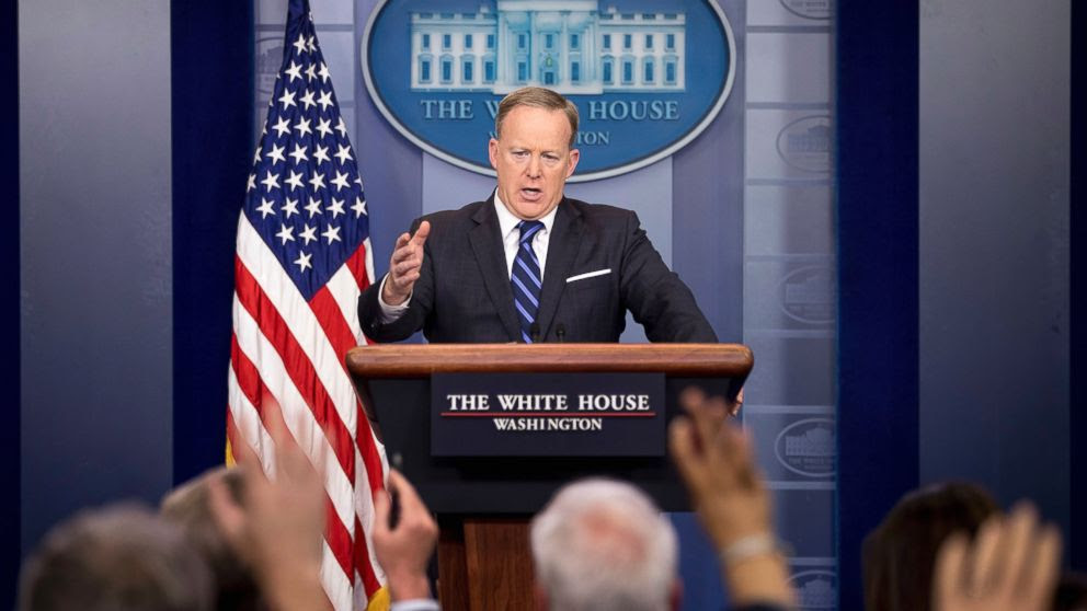 Spicer said he can't see Syria become stable without President Assad leaving power, but he stopped short of saying that Assad had committed war crimes by attacking his own people with chemical weapons.